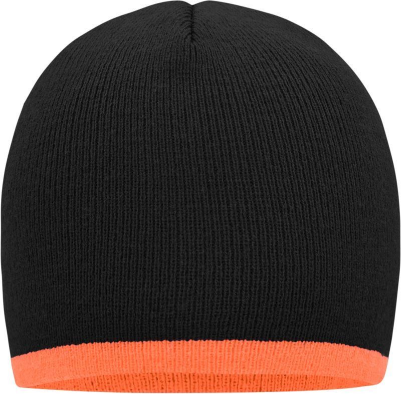 Čepice pletená s kontrastním lemem Myrtle Beach MB7584 black/orange