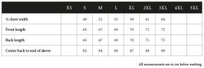 • Tabulka velikostí (rozměry se mohou lišit o 5%)