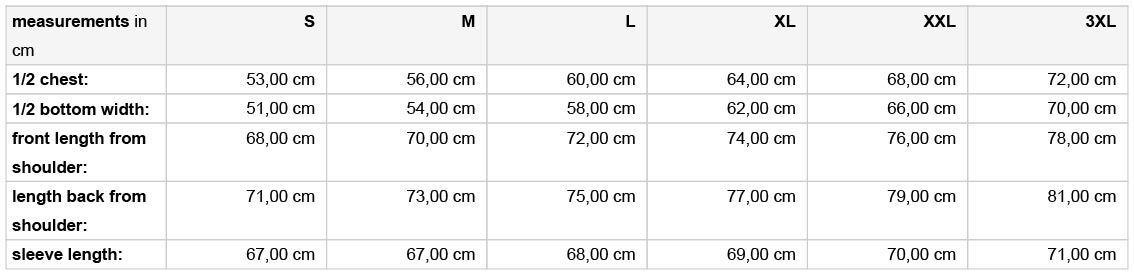 • Tabulka velikostí (rozměry se mohou lišit o 5%)