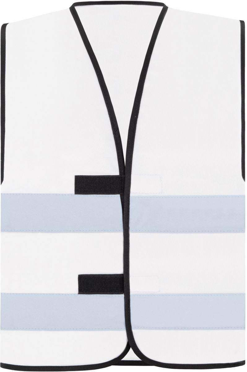 • Lined with black polyester trim, size adjustment with 2 Velcro fasteners, certified according to EN 17353 type B3 (visibility in the dark), two 5 cm wide reflective stripes around the body