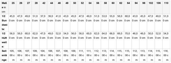 • Tabulka velikostí (rozměry se mohou lišit o 5%)