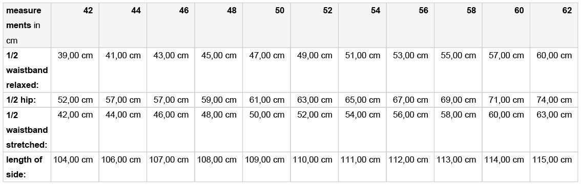 • Tabulka velikostí (rozměry se mohou lišit o 5%)