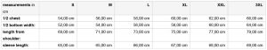 • Tabulka velikostí (rozměry se mohou lišit o 5%)