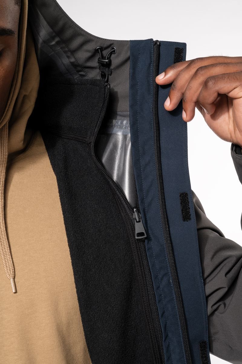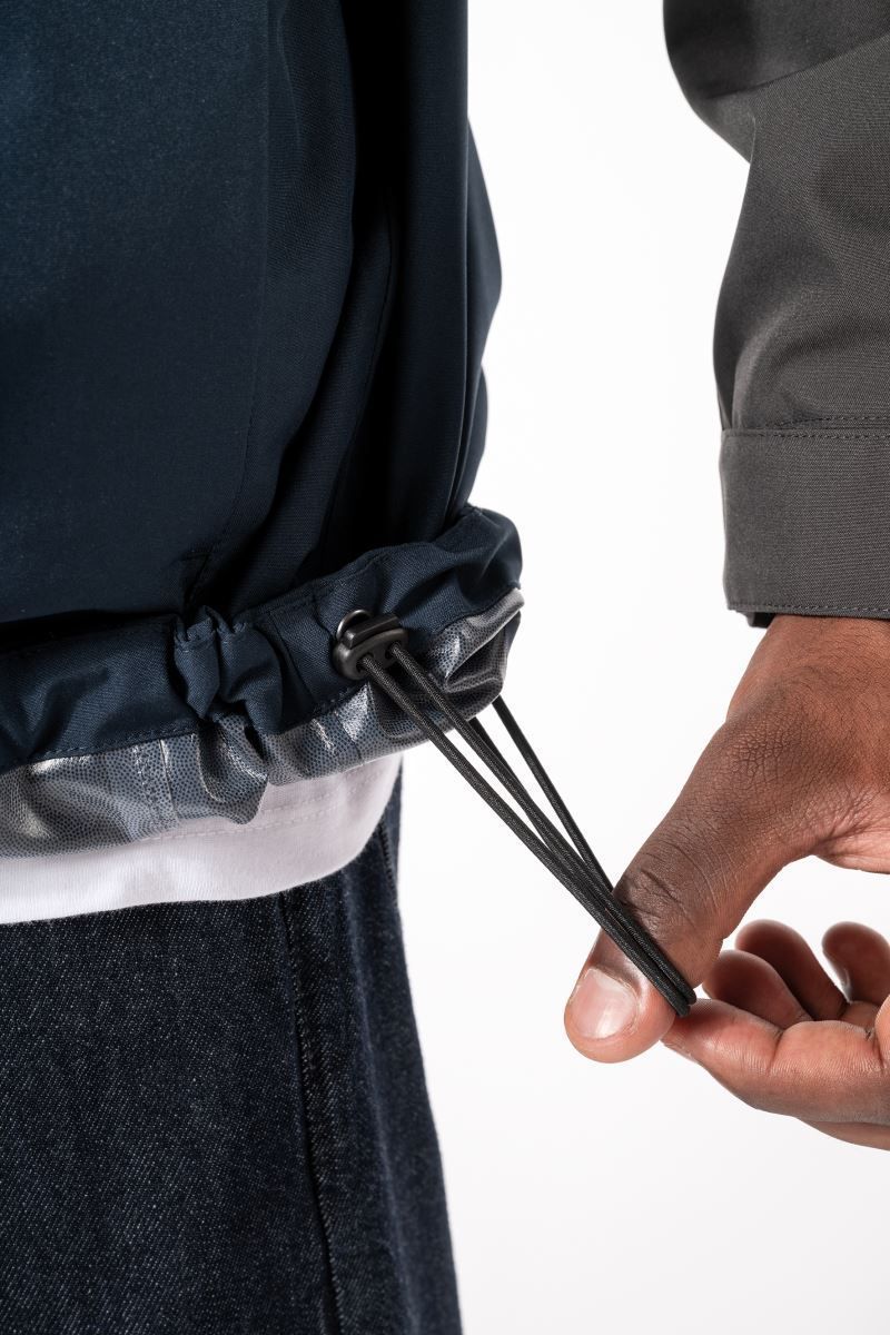 • Klassischer Schnitt, wasserdicht (4.000 mm Wassersäule), atmungsaktiv (3.000 g/m² in 24 h), Kapuze mit Kordelzug und Stopper, Kordelzug am Saum mit innenliegendem Stopper, verstellbare Ärmelbündchen mit Klettverschluss, 2 Seitentaschen mit Reißverschluss, Innentasche für Mobiltelefon, versiegelte Nähte, innenliegender Reißverschluss zum Befestigen der Innenjacke, Innenjacke: 2 Seitentaschen mit Reißverschluss